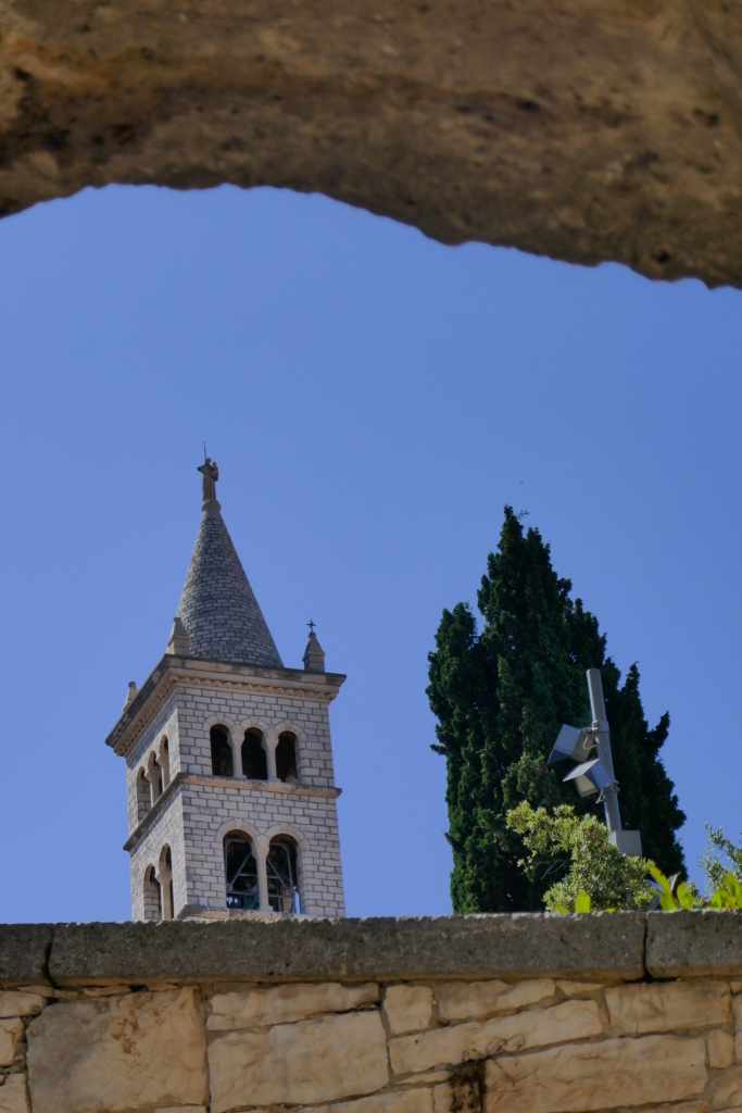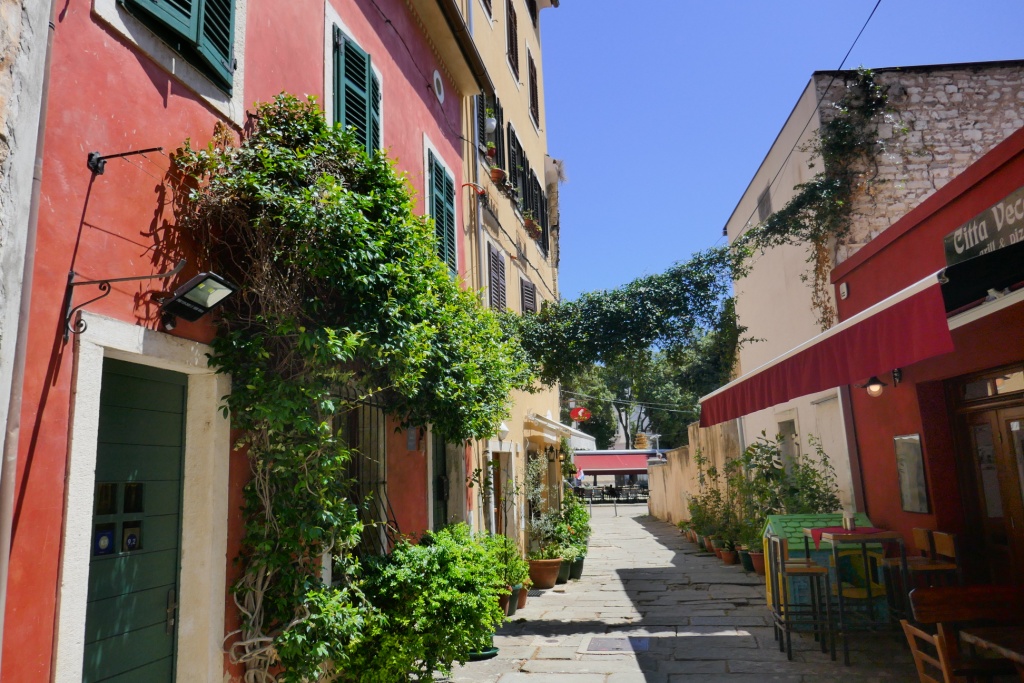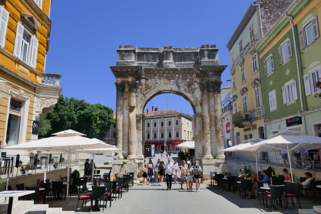 Nous repartons comme nous sommes venus par une porte antique rappelant que la ville doit son existence à la colonie romaine de Parentium conquise sur les premiers habitants de la région : les Histres dont la péninsule est éponyme : l’Istrie.