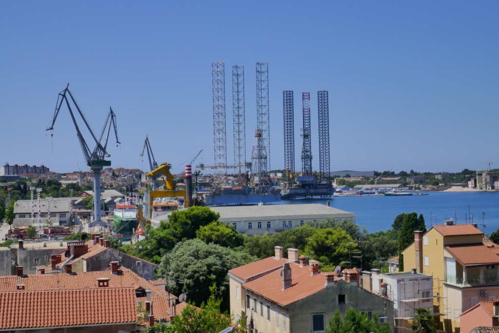 Nous partons à la découverte du reste de la ville bordée de chantiers navals dus à l’armée austro-hongroise à travers des rues marquées par les empreintes successives de l’histoire : romaines, byzantine, franque, vénitienne, autrichienne, italienne puis yougoslave.
