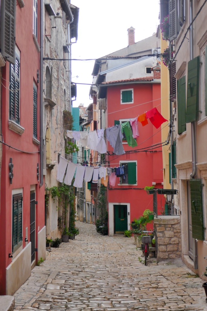 Ce matin direction Rovinj, ville fortifiée posée sur l’eau qui a été fondée par les slaves au début du Moyen Age avant que cette île ne fut transformée en presqu’île par les Vénitiens. Elle doit à son insularité une relative protection et un important développement de son commerce sous le patronage de la Sérénissime.