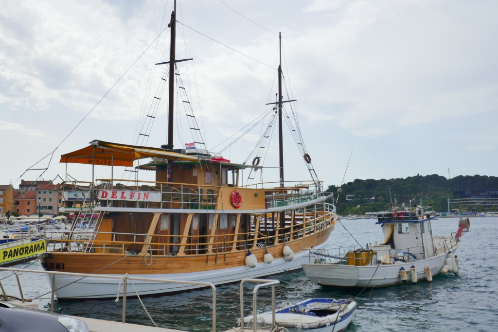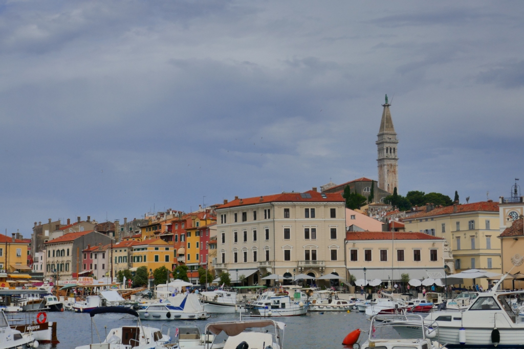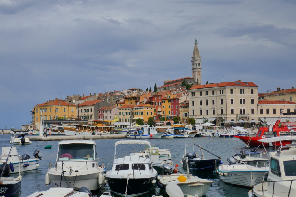 Nous retrouvons la civilisation en rejoignant l’activité du port partagé entre la pêche et les croisières en plus d’offrir un panorama d’ensemble sur les îles de sa baie et surtout l’enceinte de Rovinj.