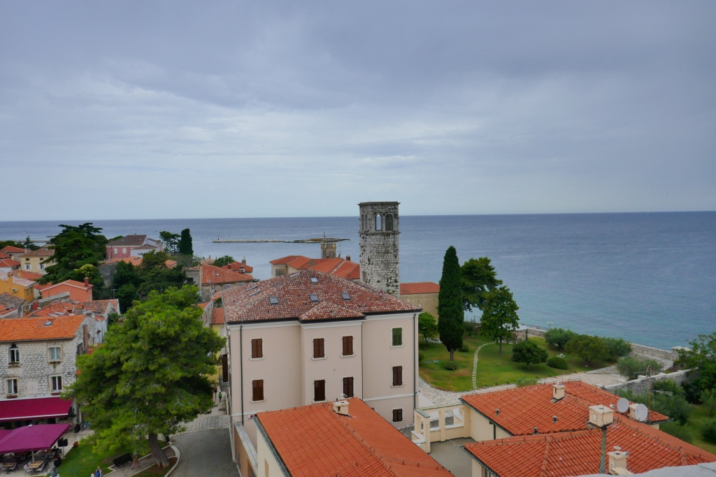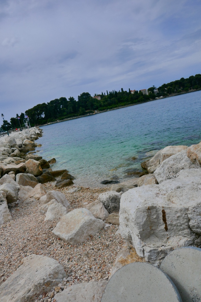 Nous poursuivons notre remontée dans le temps en suivant le littoral pour atteindre Porec, un autre site avancée dans la mer et fortifié depuis la conquête romaine. Le ciel tout gris atténue les couleurs de l’adriatique mais ne décourage pas les touristes les plus téméraires.