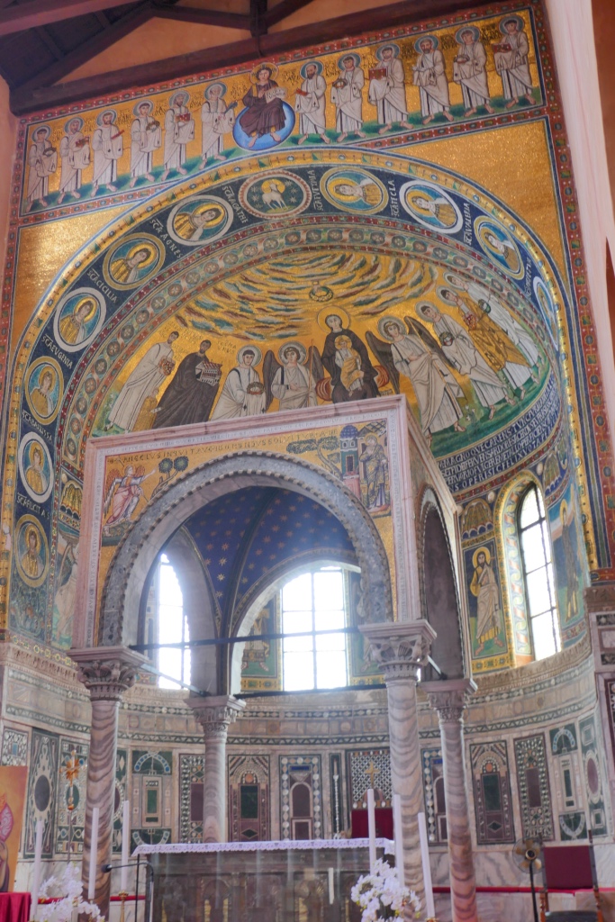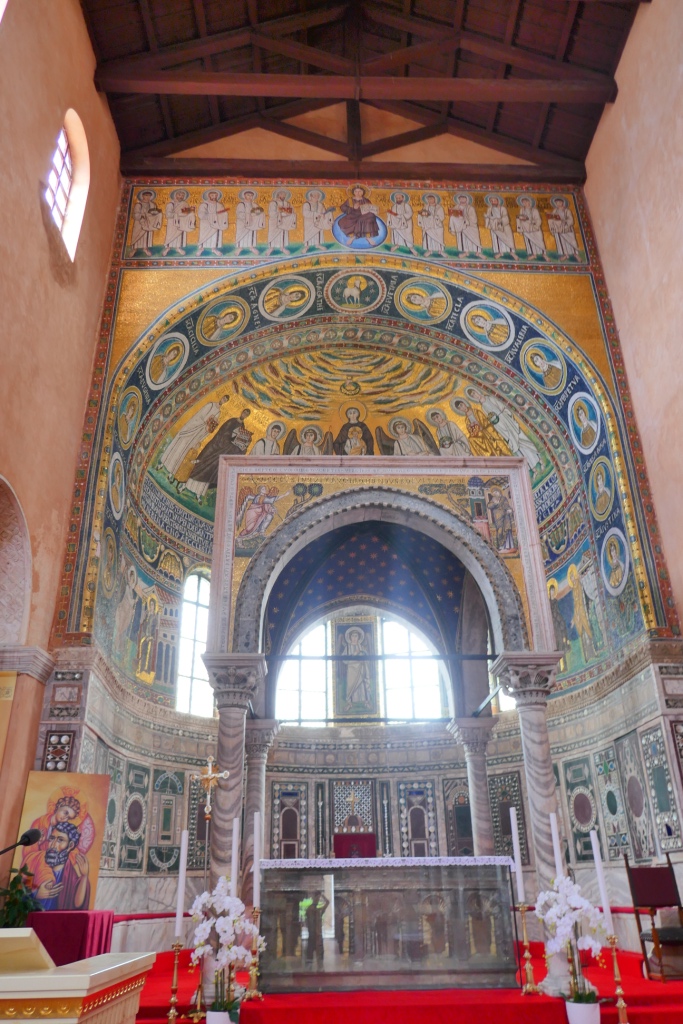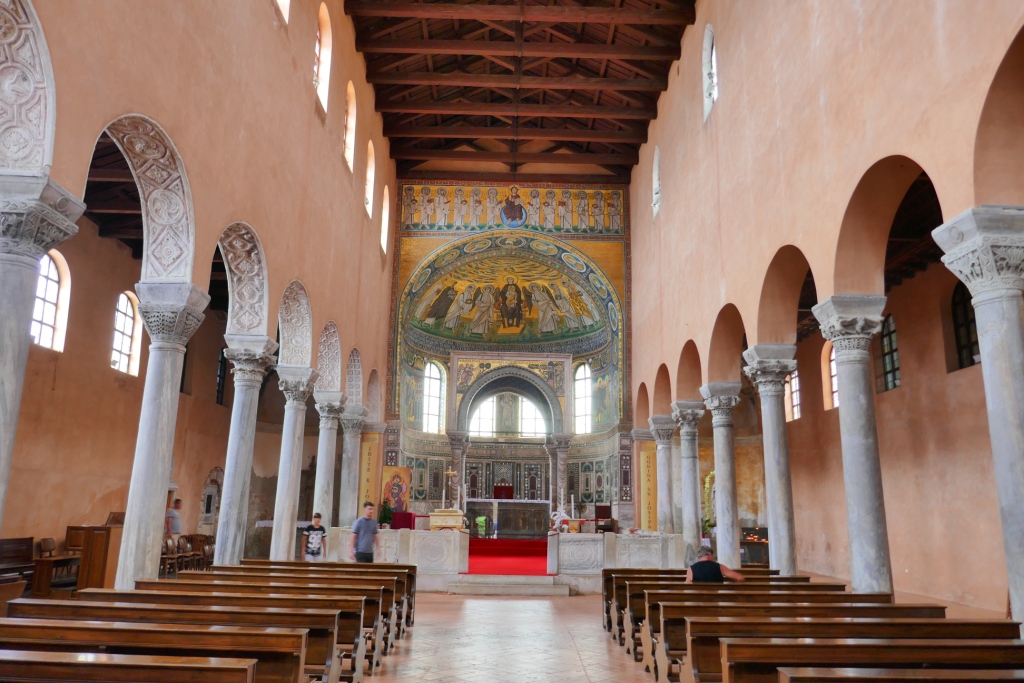 De notre côté nous visitons la star des lieues, la basilique euphrasienne. Cette église byzantine est classée au patrimoine mondial de l’humanité car elle accueille comme ses consœurs de Ravenne, de magnifiques mosaïques à fond d’or.