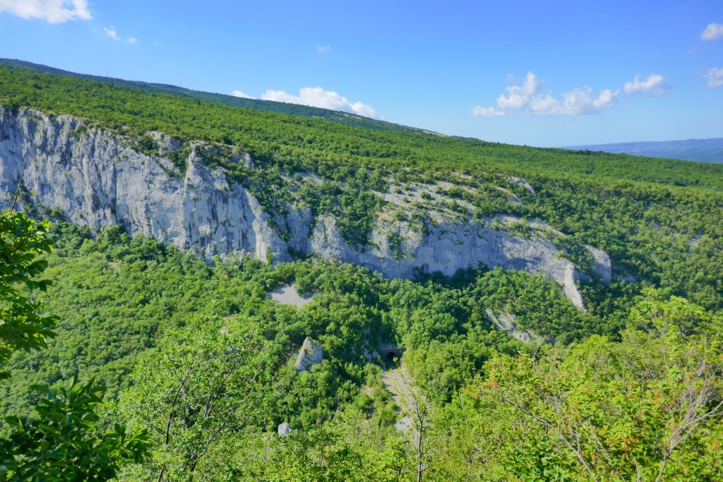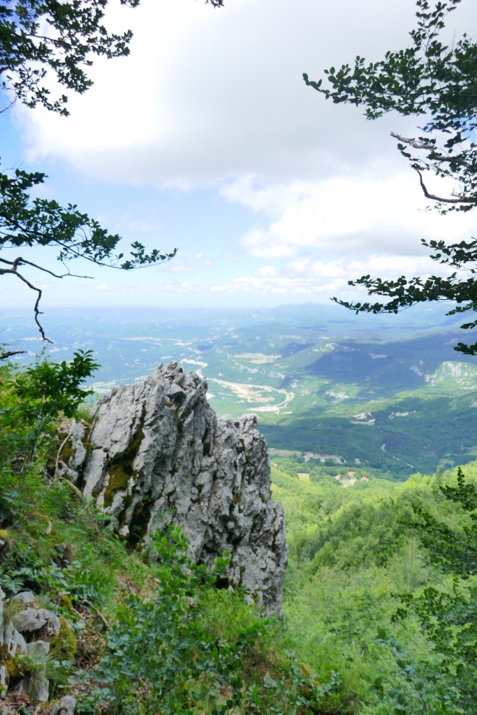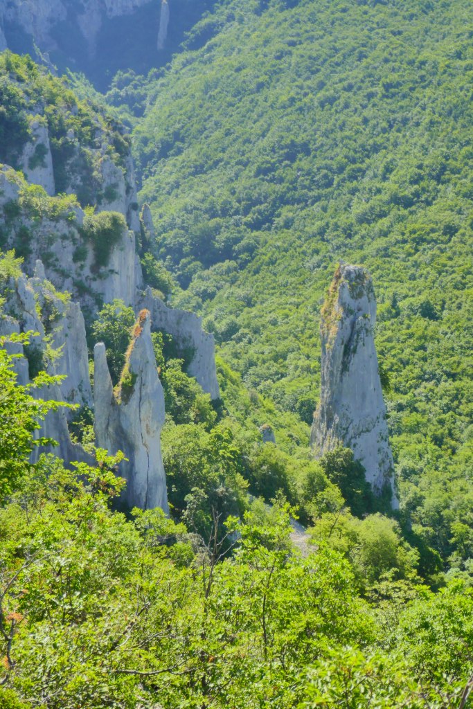 Nous faisons nos premiers pas dans le court sentier de Vela Draga qui offre au bout de 600 m, d’impressionnantes vues sur un cayon recouvert de forêts. Seuls se détachent au milieu des arbres, des pitons karstiques qui se dressent comme des colonnes de stalagmites de plusieurs dizaines de mètres.